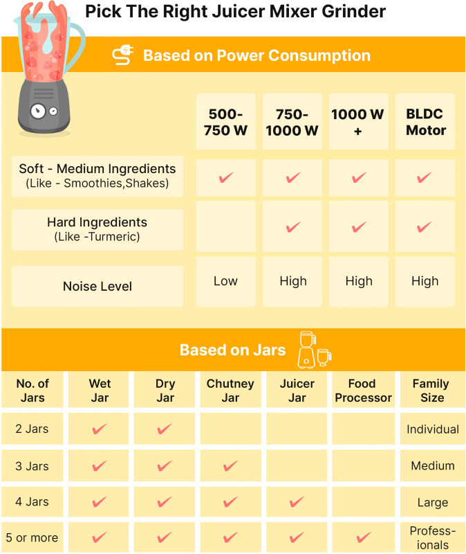 The mixer grinder includes three stainless steel jars: a 1.5-liter liquidizing jar for juices and shakes, a 1.0-liter grinding jar for dry ingredients, and a 0.4-liter chutney jar for small quantities.
