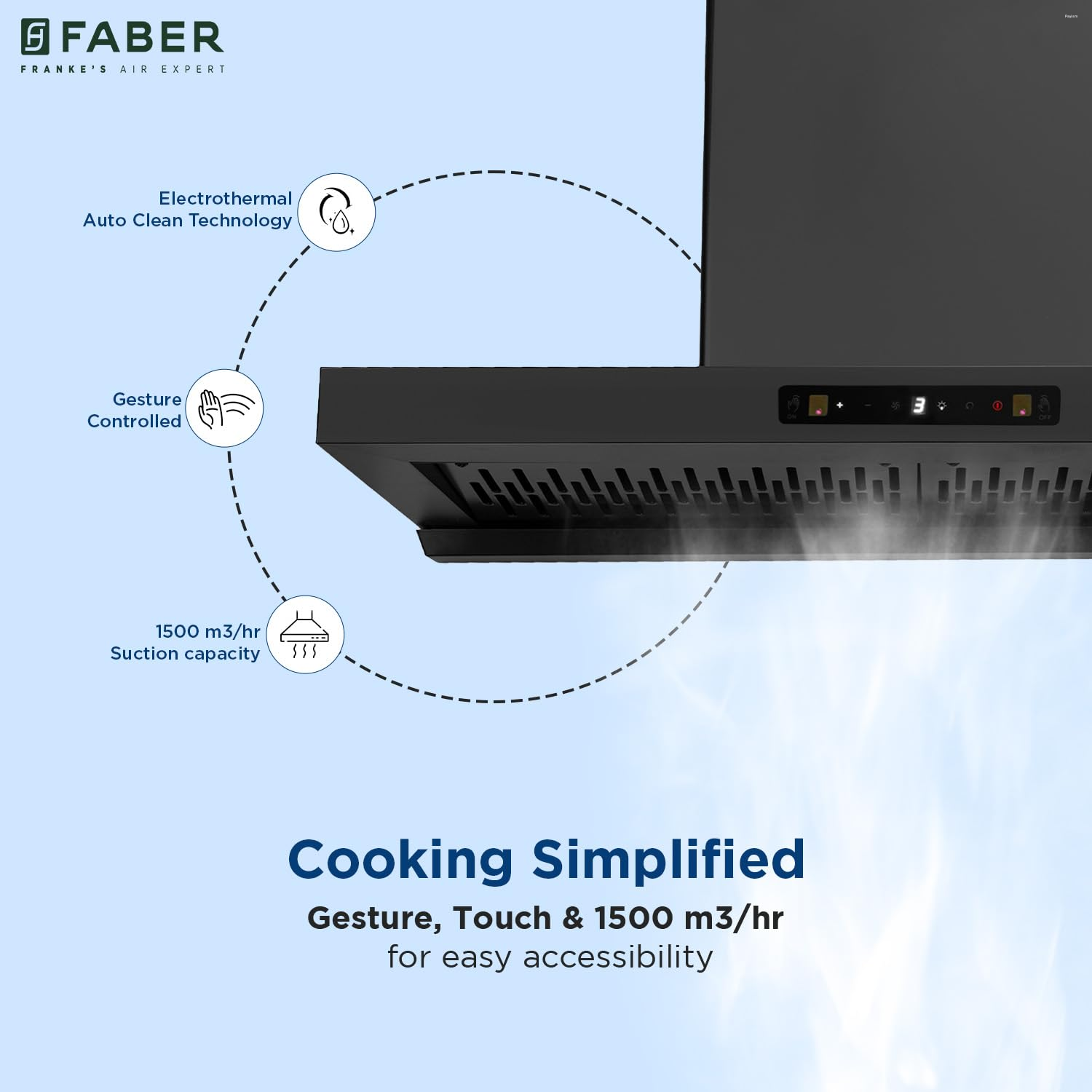 Faber Coral 90cm 1500m³/hr BLDC Autoclean T-Shape Chimney | Built In Oil Collector | Touch & Gesture Control | 12Yr Motor,2Yr Comprehensive Warranty by Faber | Hood Coral BLDC FL HC SC BK IN 90