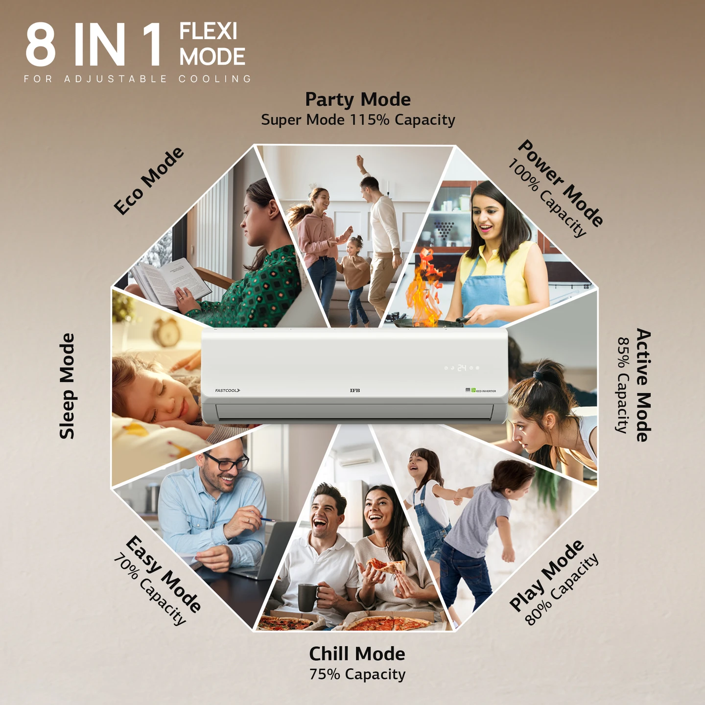 8-in-1 Flexi Mode: Adjust cooling capacity based on need (save energy or boost cooling)