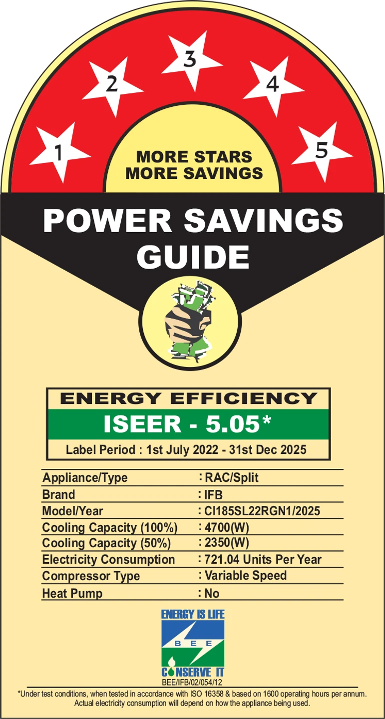 Star Rating: 5 Star (BEE 2025) — excellent energy efficiency