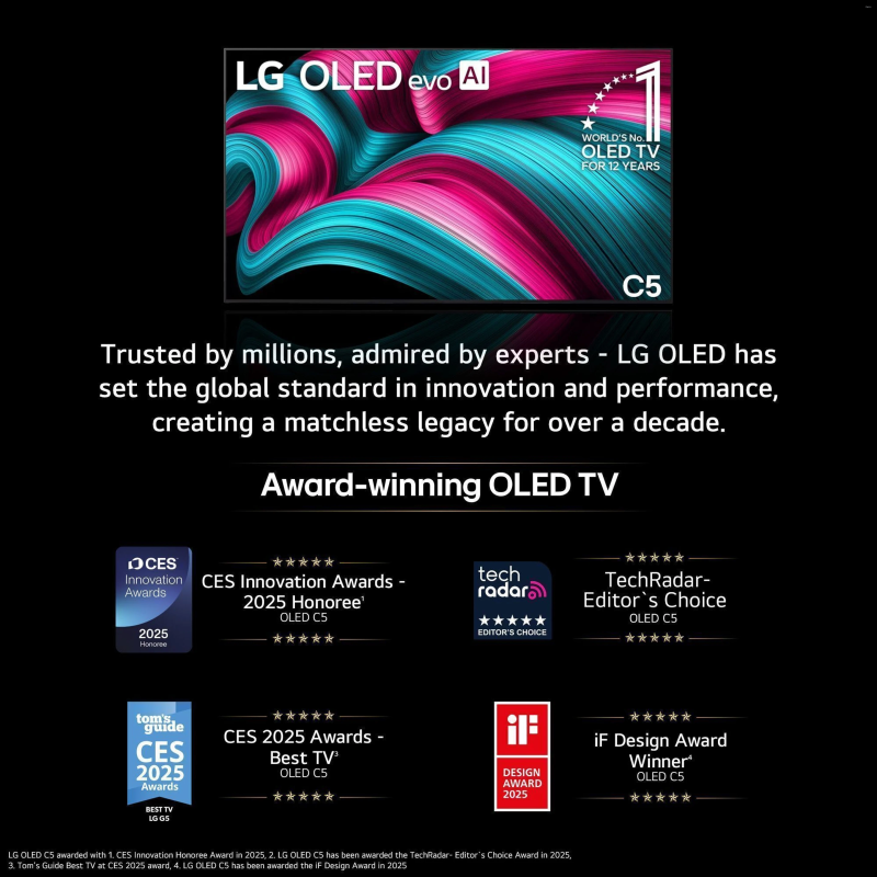 The LG OLED C5 65-inch (OLED65C5XLA) is a premium 2025 OLED evo television designed for high-end picture quality, advanced AI processing, and strong gaming performance.