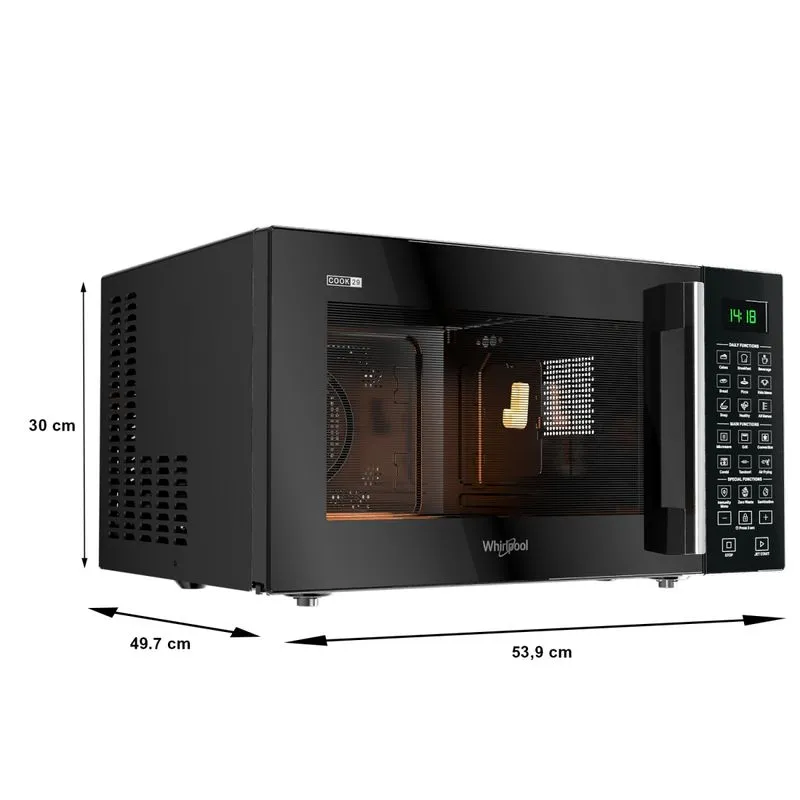The Whirlpool Magicook Pro 31CES‑E 29L Convection Microwave Oven is a multifunction kitchen appliance designed for medium-to-large families. It combines microwave, convection oven, grill, and air-fryer functions in one unit, allowing you to bake, roast, grill, reheat, and air-fry food with less oil.