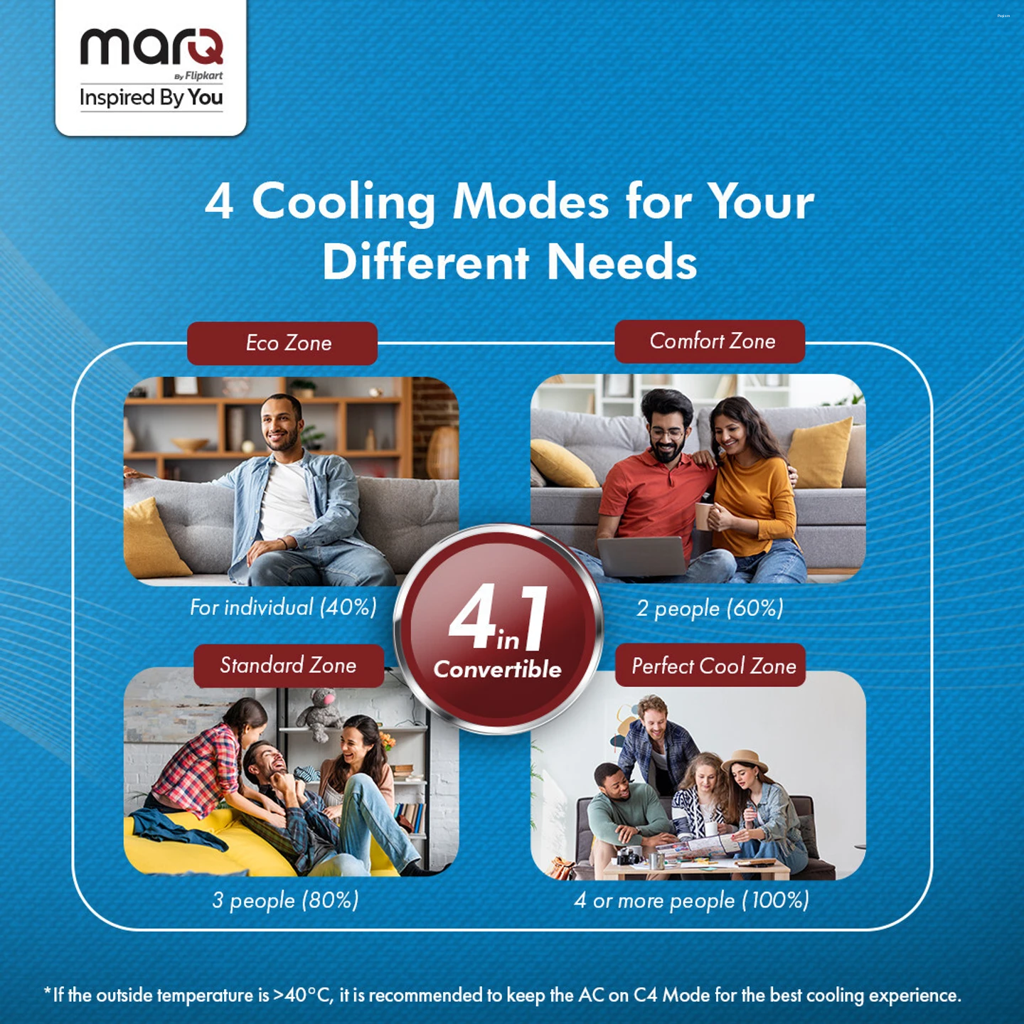 MarQ by Flipkart 2024 Model 1.5 Ton 5 Star Split Inverter 4-in-1 Convertible with Turbo Cool Technology AC (155IPG24WQ, White)