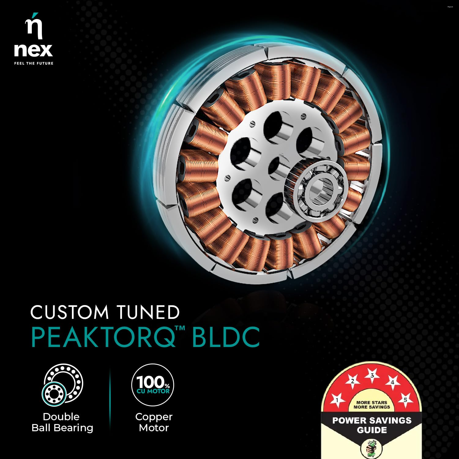 NNEX by BAJAJ Dryft A90 BLDC 1200 MM | BEE 5 Stars Rated Premium Ceiling Fan With Remote Control | 20%* Higher Air Thrust | Airfluence ABS Blade For Low Noise | 2-Yr Warranty Free Installation 【White】