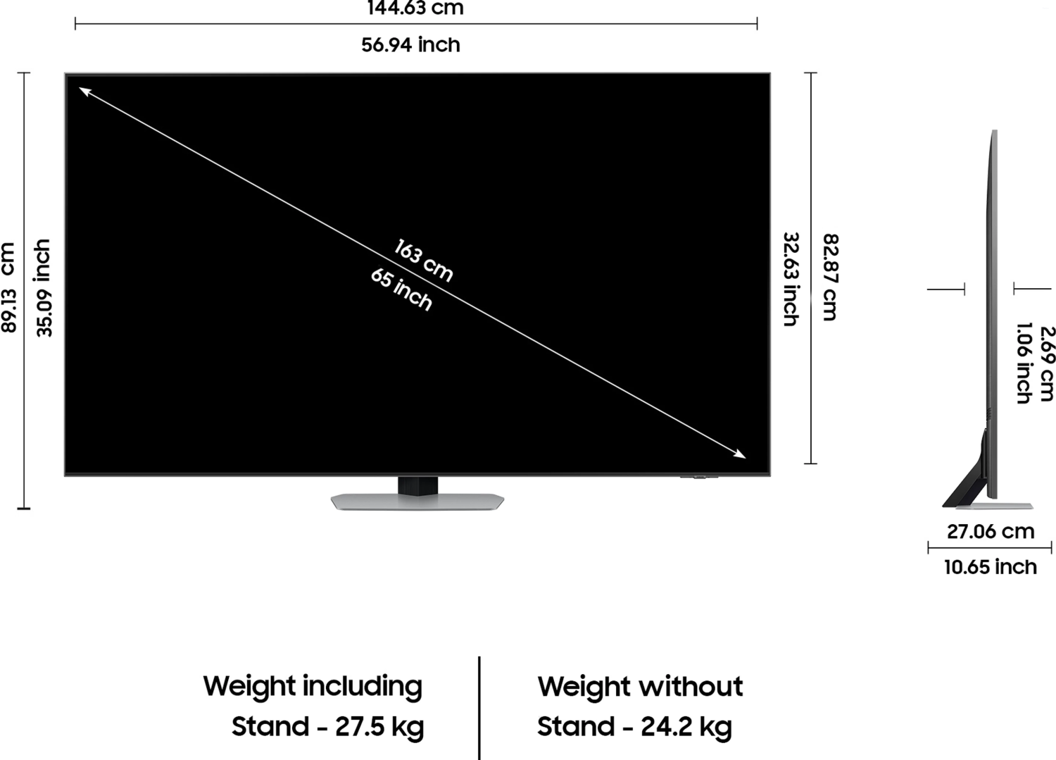 The design is ultra-slim with minimal bezels (NeoSlim design), giving it a modern and premium appearance suitable for both wall mounting and stand placement.