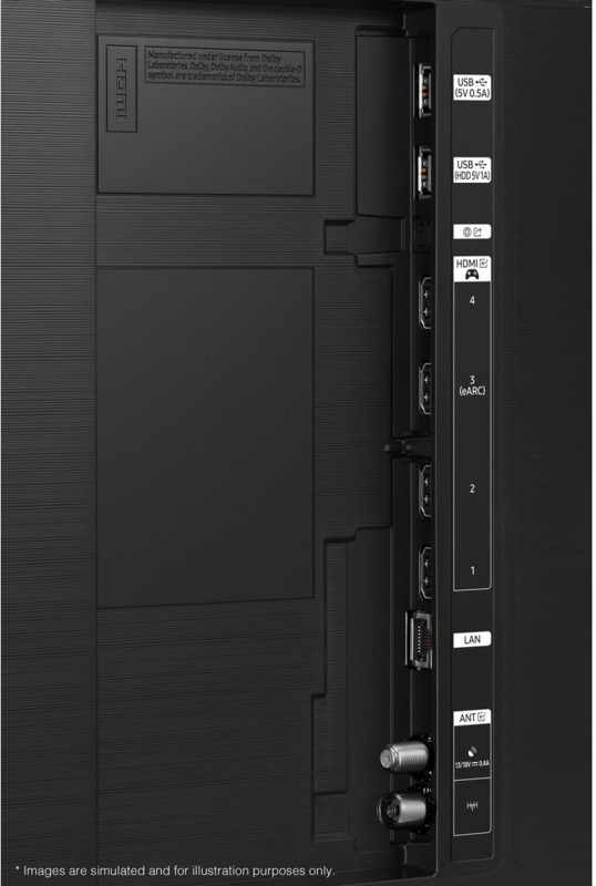 For audio, it includes a 60W 4.2.2 channel speaker system with Dolby Atmos and Object Tracking Sound+, creating a more immersive experience where sound follows on-screen action.