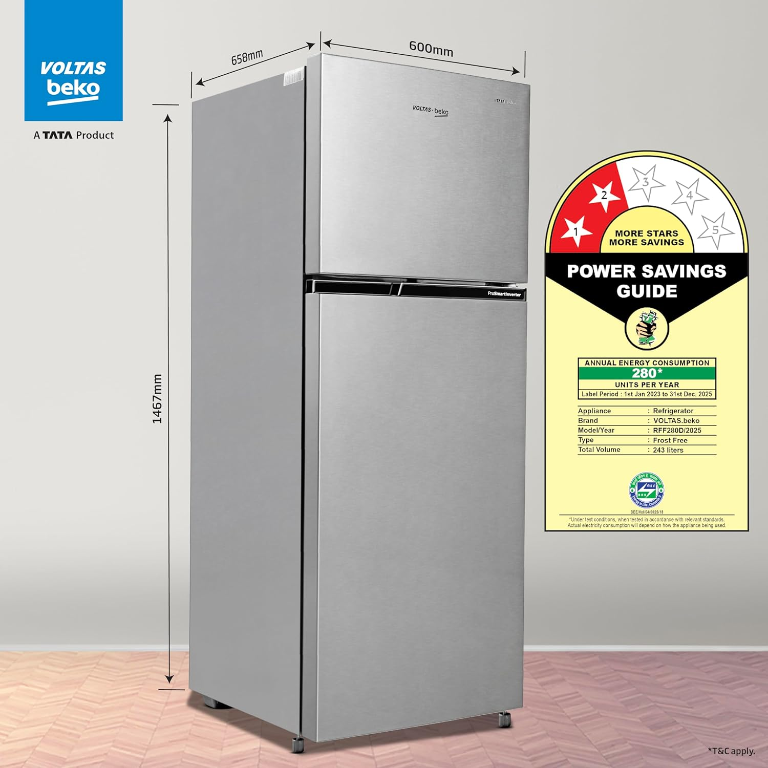 Capacity: 243 Litres (ideal for 2–3 members)