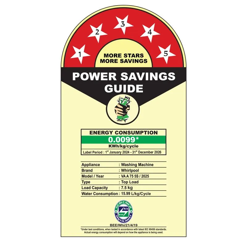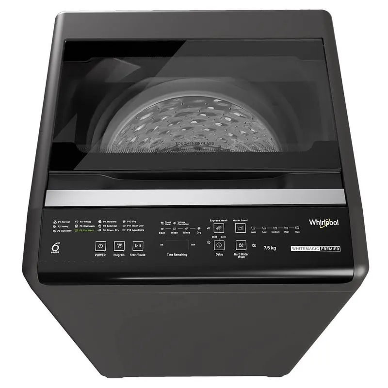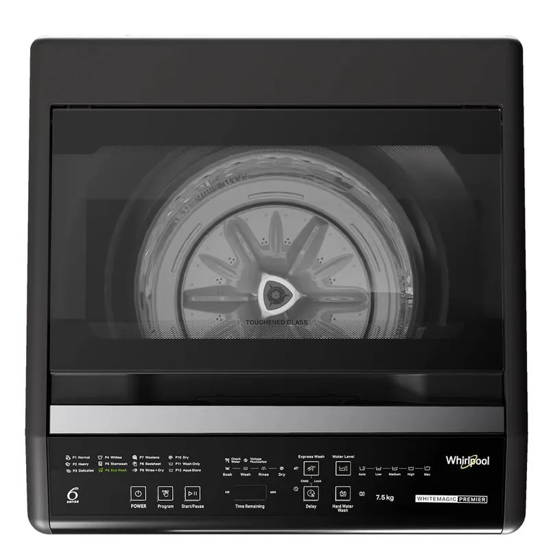 The Whirlpool Whitemagic Premier GenX 7.5 kg 5 Star Fully Automatic Top Load Washing Machine is a fully automatic top-load washing machine designed for small to medium families (3–4 members). It offers efficient washing performance with low power consumption, thanks to its 5-Star energy rating.