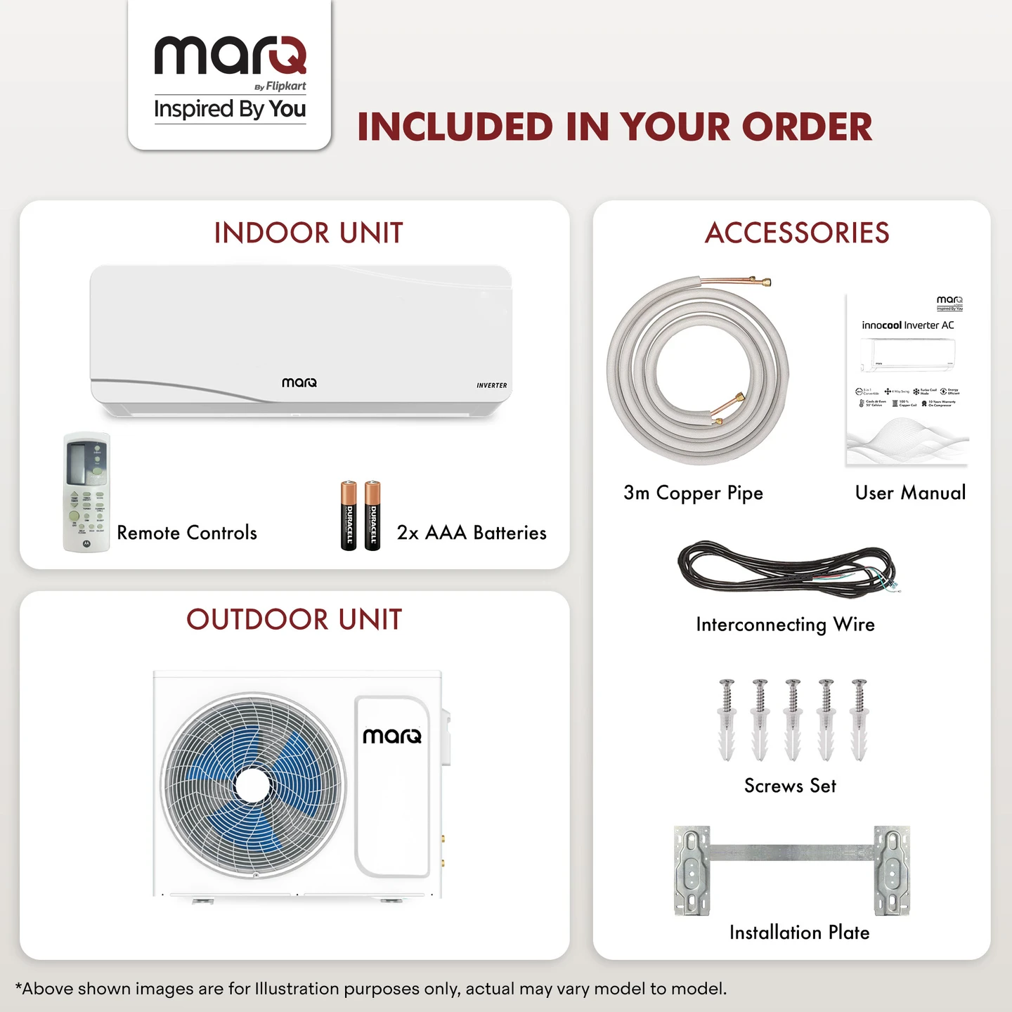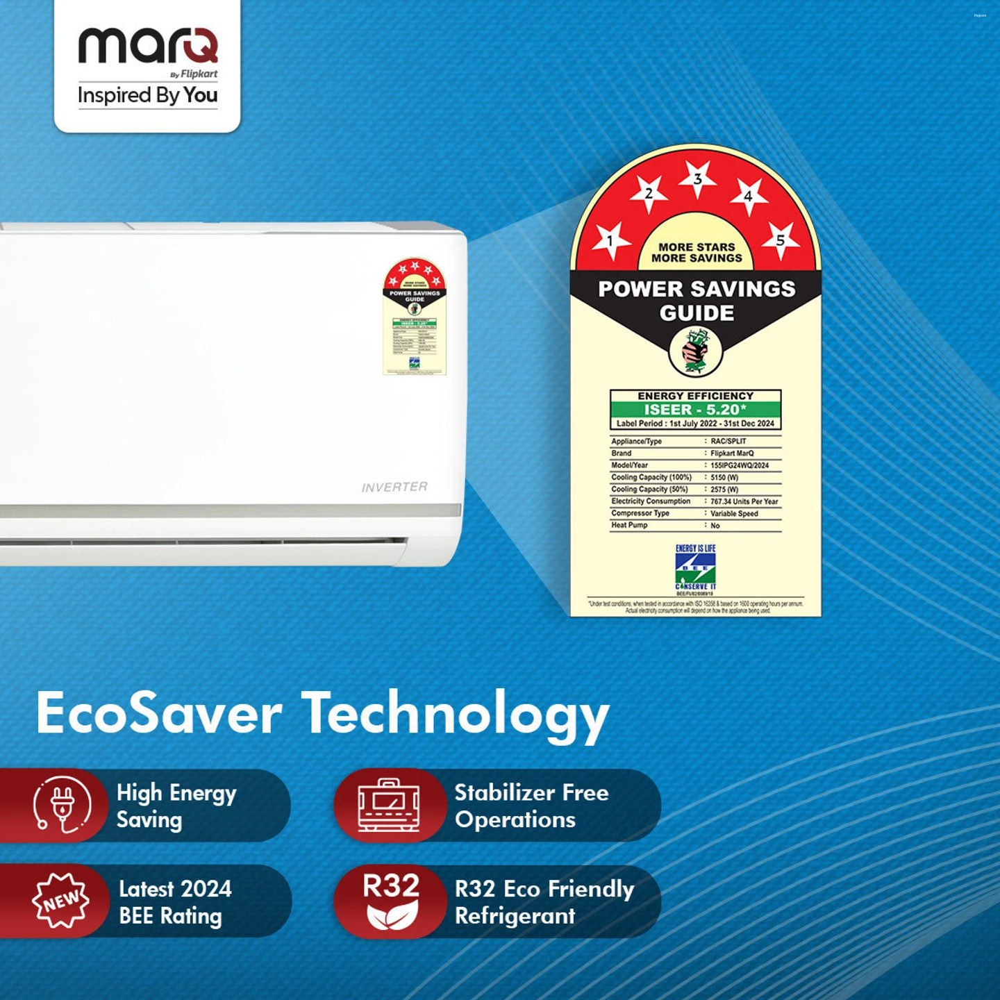MarQ by Flipkart 2024 Model 1.5 Ton 5 Star Split Inverter 4-in-1 Convertible with Turbo Cool Technology AC (155IPG24WQ, White)