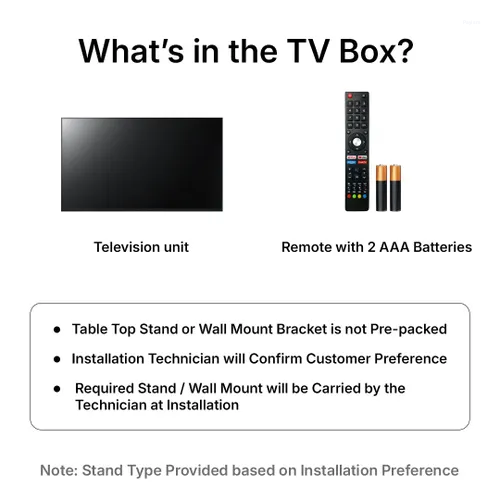 Screen size: 55 inches (139 cm diagonal) Resolution: 4K Ultra HD — 3840 × 2160 pixels Refresh rate: 60 Hz HDR support: HDR10 and HDR10+ Picture processor: 4K Colour Engine — enhances colour, upscales content, improves clarity Colour enhancement engine: Hexa Chroma Drive — renders rich, vivid colours Audio Total speaker output: 20 W (2 × 10 W) Built-in speakers: stereo (2.0 channel) Smart Features & Connectivity Smart TV: Yes — Android / Google TV based OS Wi‑Fi: Yes HDMI ports: 3 (HDMI 2.1) USB ports: 2 ARC / Audio out: HDMI ARC + Optical Audio Out Ethernet (LAN): Yes Screen mirroring / Chromecast built-in / Smart‑cast support: Yes